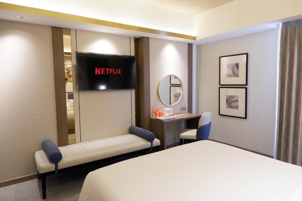 Im HARRIS Hotel & Conventions Gubeng profitieren Sie von geräumigen, klimatisierten Unterkünften mit Annehmlichkeiten wie Flachbild-Kabel-TVs, Safes, Sofas, Wasserkocher, Minibar und eigenem Bad mit heißen/kalten Duschen, Haartrockner und Bademänteln. Das eigene Bad ist mit Bademänteln ausgestattet, sodass sich jeder Aufenthalt luxuriös und einladend anfühlt.
