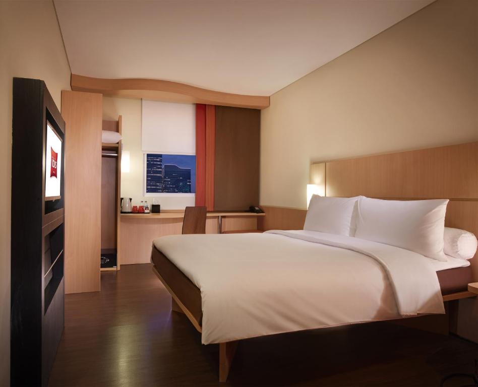 Jedes der geräumigen Zimmer im Ibis Surabaya City Center ist mit modernen Annehmlichkeiten ausgestattet, die den Komfort und die Bequemlichkeit verbessern. Diese Zimmer verfügen über einen Flachbildfernseher, moderne Klimatisierungssysteme mit Klimaanlage und luxuriösen Hartholzböden, die die polierten Parkettböden ergänzen. Die privaten Badezimmer sind großzügig mit Duschen, Haartrocknern und einer Auswahl an hochwertigen Pflegeprodukten ausgestattet und schaffen ein entspannendes Heiligtum in jeder Gästesuite.