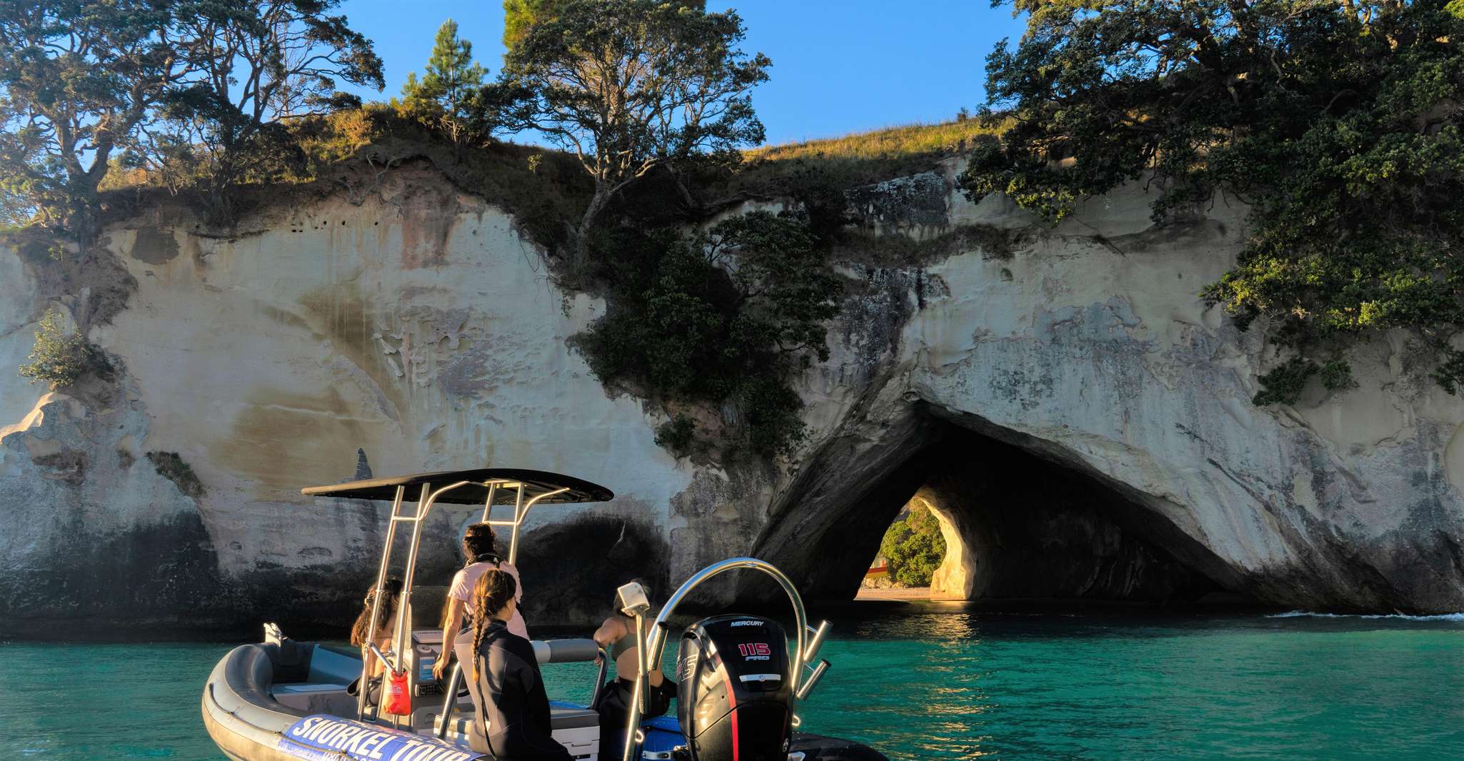 Willkommen, Reisende! Um ein unvergessliches Erlebnis zu garantieren, lassen Sie sich von uns durch die bezaubernden Gewässer rund um Cathedral Cove, Hahei, Coromandel Peninsula, Neuseeland führen.