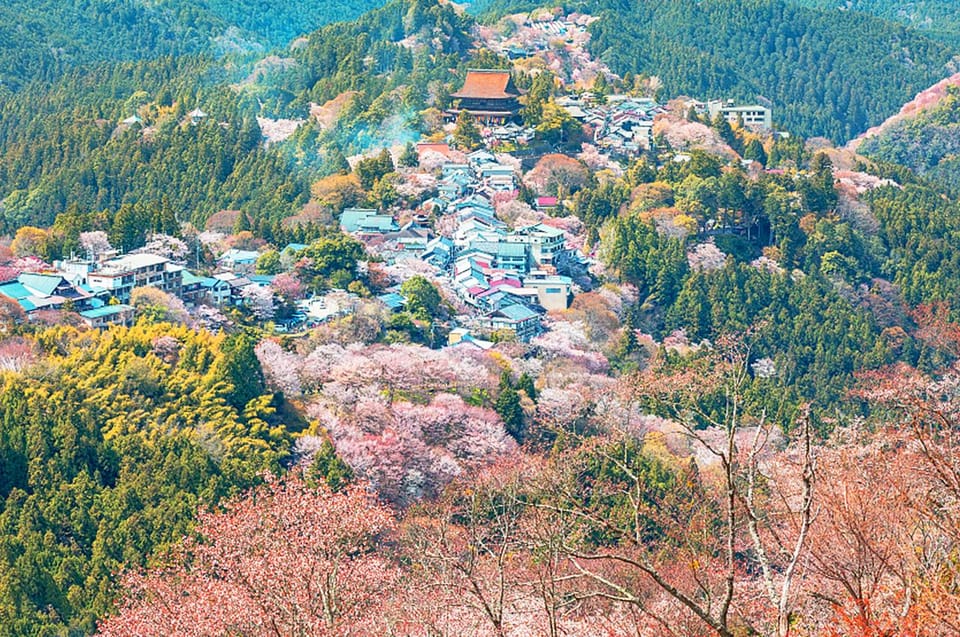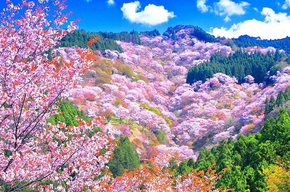 Am Nachmittag wagen Sie sich nach Yoshinowa, einem UNESCO-Weltkulturerbe, das für seine landschaftliche Schönheit während der Kirschblütensaison bekannt ist.. Hier bieten über 30.000 Kirschbäume eine atemberaubende Kulisse, so dass es möglich ist, bis zu 1.000 Kirschblüten von jedem Aussichtspunkt aus zu bewundern. Tauchen Sie ein in die reiche Geschichte und Kultur dieses historischen Dorfes, umgeben von alten Schreinen und Tempeln aus Jahrhunderten. Die ruhige Atmosphäre und das ehrfürchtige Ambiente schaffen ein unvergessliches Erlebnis.. Als die Sonne untergeht, kehren Sie nach Osaka zurück, bereit, Ihre geschätzten Erinnerungen wieder zu erleben.